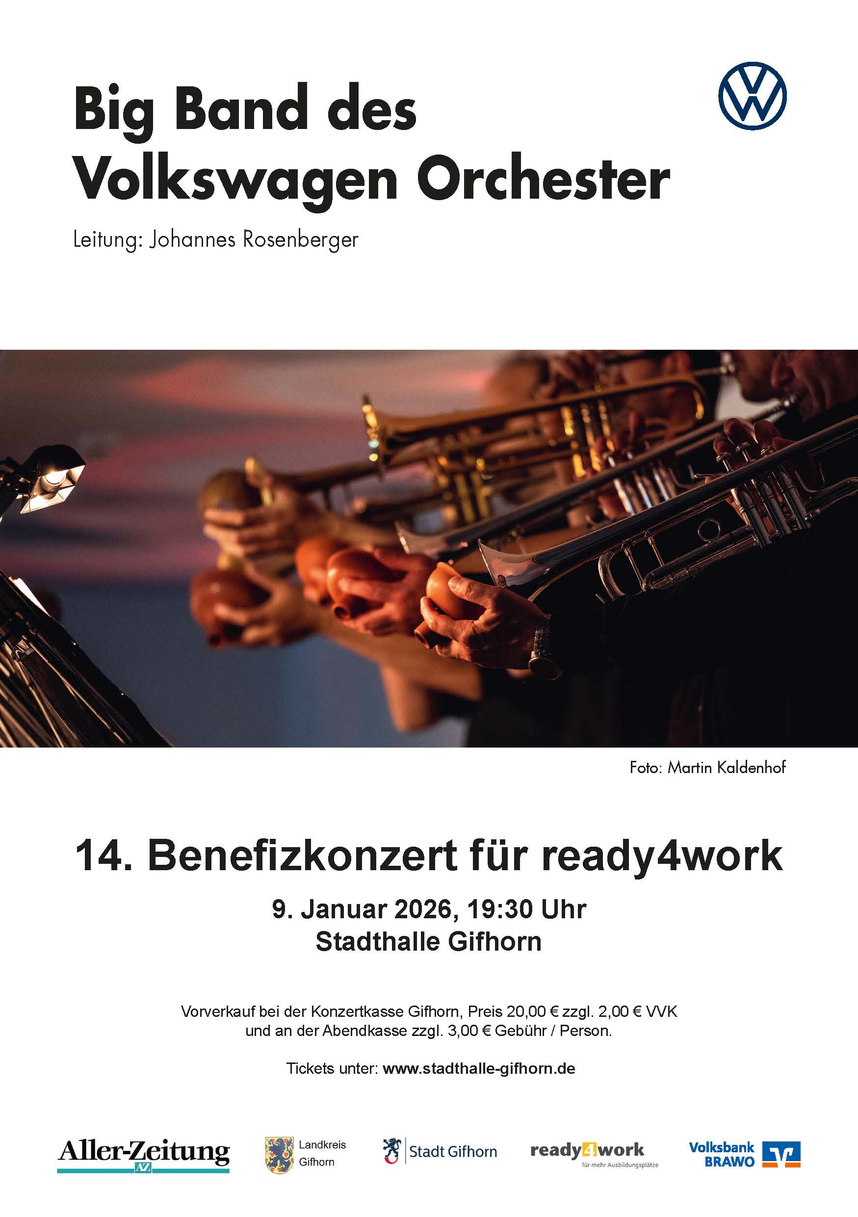 Am Freitag, 9. Januar 2026, um 19.30 Uhr veranstaltet der Gifhorner Aktionsbeirat des Fördervereins das 14. Benefizkonzert zugunsten des Fördervereins ready4work. Unter ... Mehr